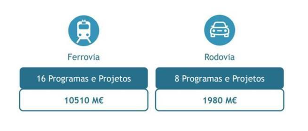 Os investimentos previstos para o setor dos Transportes e Mobilidade ascendem aos 21,660 MM€, cerca de metade do montante total disponível, sendo que para melhoria das infraestruturas ferroviárias e rodoviárias nacionais estão previstos 12,5 MM€ para a execução de 24 projetos.