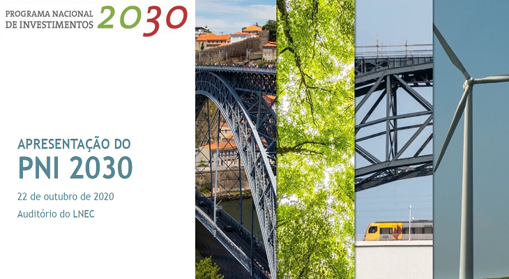 Foi apresentado publicamente, no dia 22 de outubro, o Plano Nacional de Investimentos para 2030 (PNI 2030). Este Plano contempla um investimento de 43 mil milhões de euros (MM€) em infraestruturas e equipamentos nos setores dos Transportes e Mobilidade, do Ambiente, da Energia e do Regadio.