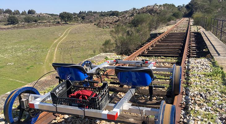 Com esta espécie de bicicletas adaptadas aos carris, os turistas percorrem pedalando o troço desativado, atravessando o Parque Natural da Serra de São Mamede, área protegida e de grande beleza paisagística, repleta de carvalhos, castanheiros, sobreiros, azinheiras, enquanto no céu planam, tranquilos, grifos, milhafres e águias perdigueiras.