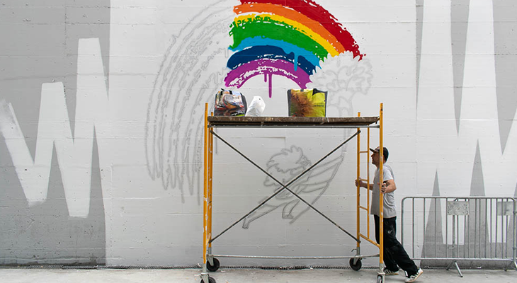 O trabalho do ilustrador e cartoonista André Carrilho, publicado na capa da edição do dia 25 de abril de 2020 do jornal “Diário de Notícias”, ganhou uma nova dimensão e transformou-se em mural.