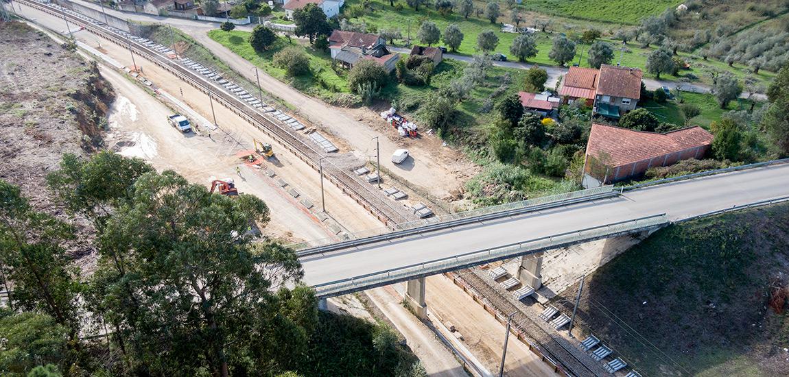 Construção de infraestruturas de suporte à componente de sinalização e telecomunicações, assim como, de instalações fixas de tração elétrica e implementação de RCT+TP.