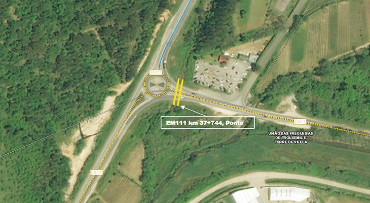 No caso do IC2, o projeto adota uma solução que prevê a manutenção dos dois sentidos de tráfego, reduzidos a uma via em cada sentido. Já para a EM111 está prevista uma solução com a manutenção dos dois sentidos de tráfego, restringidos a uma única via e em trânsito alternado.