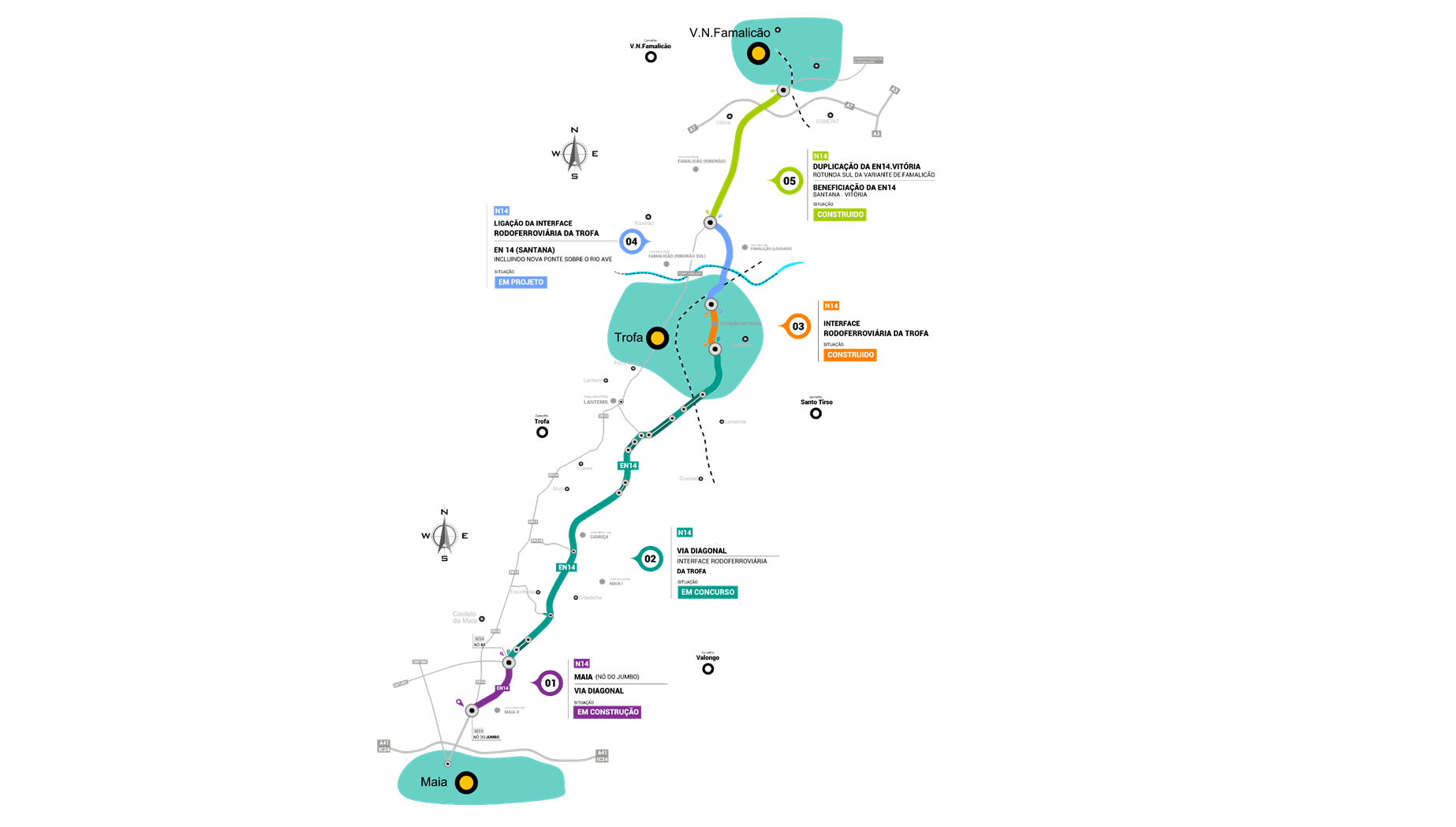 O empreendimento da EN14 liga os concelhos de Vila Nova de Famalicão, Trofa e Maia, através da EN14 e da sua Variante. Numa primeira fase foi executada uma empreitada de requalificação que teve um investimento de 3,2 milhões de euros, numa extensão de quatro quilómetros, concluída desde julho de 2019.