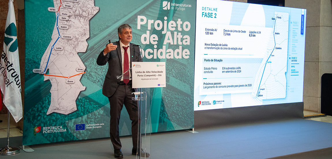 A Infraestruturas de Portugal esteve hoje, dia 10 de outubro, na cerimónia de adjudicação da Concessão da Linha Ferroviária de Alta Velocidade (LAV), entre Porto (Campanhã) e Oiã, que integra a primeira de três fases da nova ligação Porto - Lisboa, ao Consórcio LusoLav, composto por várias empresas.