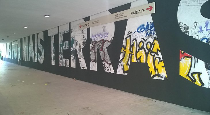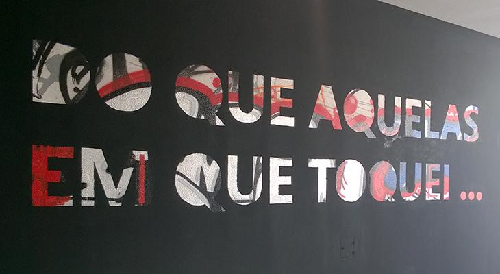Na intervenção agora realizada, perpetuando as diferentes “camadas de memória que se sobrepõem”, destaca-se a frase Viajei por mais terras do que aquelas em que toquei, retirada da “Passagem das horas” poema de Álvaro de Campos, e que domina todo o painel central.