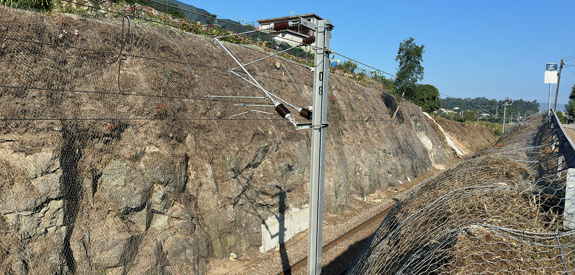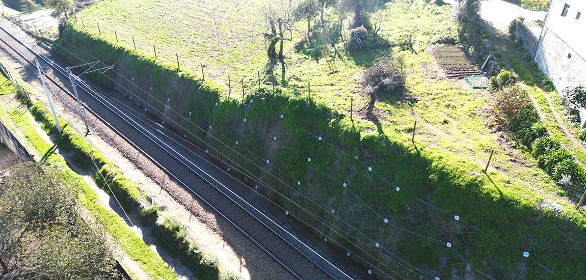 A empreitada, com um investimento associado de 500 mil euros, teve como objetivo estabilizar taludes com elevado risco geotécnico e reduzida distância à superestrutura ferroviária, onde estavam identificadas descontinuidades no maciço geológico.