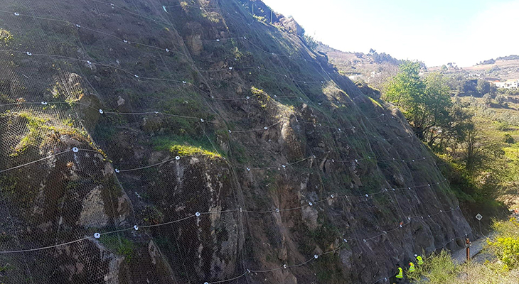 Os trabalhos consistiram na desmatação, saneamento, reparação de blocos com pedra argamassada, colocação de redes de proteção de alta resistência, drenagem da crista do talude e plataforma, e a criação de atravessamentos hidráulicos nalguns pontos.