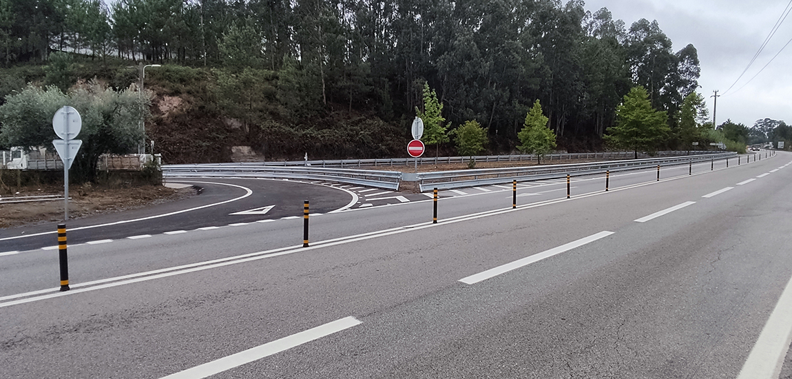 As intervenções realizadas no ramo unidirecional na via de acesso ao IC2, com a extensão de 60 metros, foram efetuadas sobre a plataforma da interseção existente, onde parte foi demolida, dando lugar a uma nova área verde de integração paisagística.