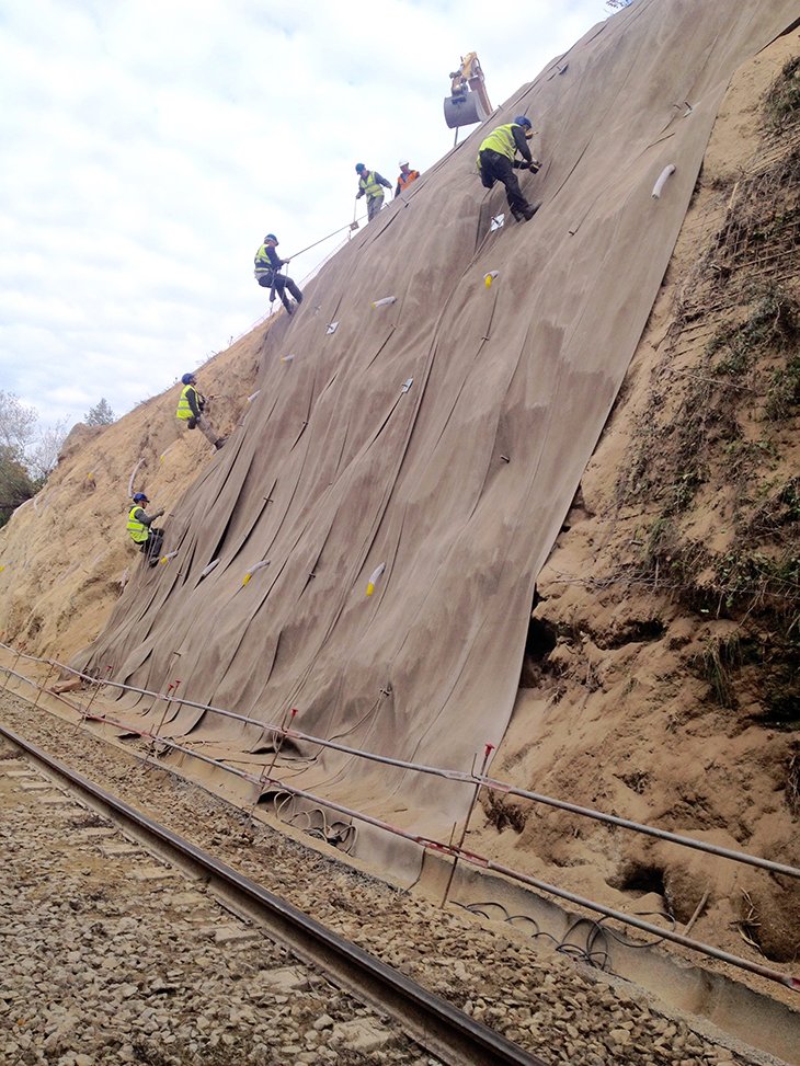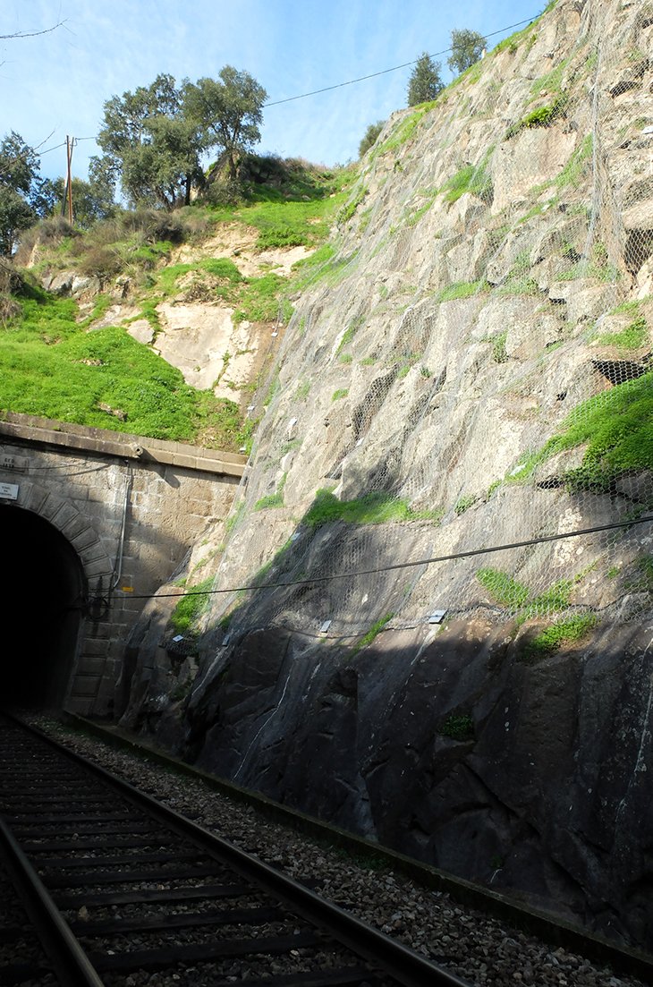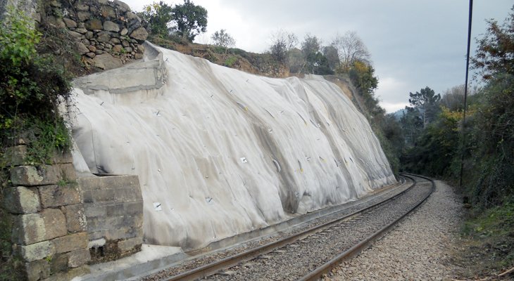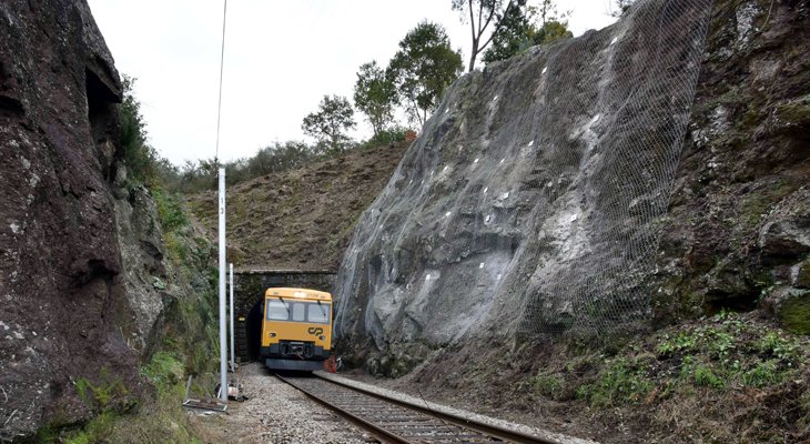 Conscientes de que a meteorização e alteração do estado dos taludes é um processo evolutivo que se vai agravando com a passagem do tempo, e de que, aquando de condições meteorológicas adversas pode ocorrer o agravamento súbito do seu estado e consequentemente fenómenos como quedas de blocos rochosos que poderão interferir com o gabarit e originar incidentes, foi decidido agir de modo preventivo procedendo ao tratamento dos mesmos com um sistema de redes e cabos de aço moldados e pregados aos taludes.