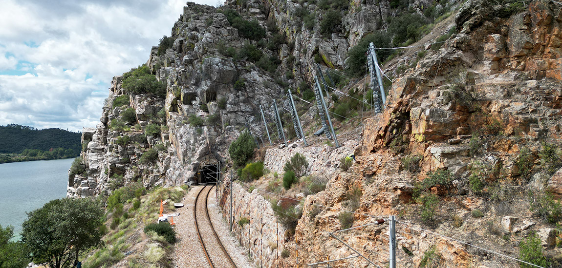 Foi concluída a empreitada de montagem de barreiras dinâmicas no talude contíguo ao emboquilhamento de saída do túnel das Portas de Ródão, localizado na Linha da Beira Baixa, concelho de Vila Velha de Ródão, distrito de Castelo Branco.