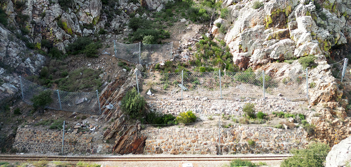 A empreitada consistiu na desativação total da barreia existente e na materialização de quatro novas barreiras dinâmicas, com capacidade para absorver blocos com dimensão média de 1.5 m3, mas podendo atingir os 3.0 m3. Face à dispersão em área dos potenciais locais de origem de destacamento de blocos, à orografia acidentada do próprio talude, à recorrência do fenómeno e à necessidade de salvaguardar uma distância mínima à Linha da Beira Baixa, procedeu-se à instalação de 1 barreira com energia de impacto máxima de 3000 kJ e 5m de altura, 2 barreiras com energia de impacto máxima de 3000 kJ e 6m de altura e 1 barreira com energia de impacto máxima de 5000 kJ e 6m de altura, única na nossa Rede.