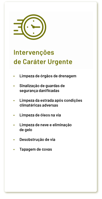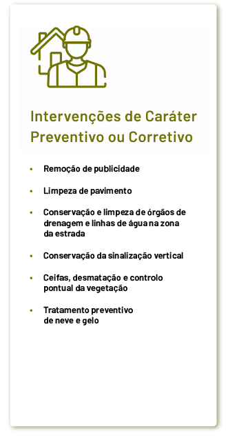 A atividade operacional é ancorada em contratos de Conservação Corrente Plurianual, contudo, a sua intervenção é complementada com as Brigadas de Intervenção (BI’s).
