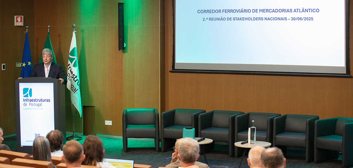 A 2.ª reunião de Stakeholders Nacionais do Corredor Ferroviário de Mercadorias Atlântico, que se realizou no dia 30 de junho, na Sede da IP, no Pragal, foi uma oportunidade para os parceiros se atualizarem sobre as muitas atividades e projetos em desenvolvimento e implementação para a conclusão do Corredor de Transporte Europeu Atlântico no âmbito da política TEN-T revista e das prioridades políticas da nova Comissão na área dos transportes.