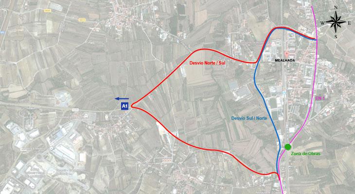 Por forma a minimizar impactos negativos na circulação foram criados percursos alternativos, definidos em articulação com a Câmara Municipal da Mealhada, que se desenvolvem dentro da cidade e que estão devidamente sinalizados, conforme esquema em baixo.