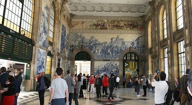 (...) O comboio, chegado a São Bento, parecia deixar os pulmões na linha; um fumo branco como espuma inundava o cais; das portinholas saía de roldão uma gente apressada e que, de repente, rompia os laços de viajante e mergulhava na cidade com as suas malas e os embrulhos, pronta a começar o dia urbano, a apanhar táxi, a reconhecer a família que lhe estende os braços. (Agustina Bessa Luís, As Estações da Vida)