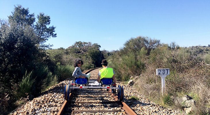 Com esta espécie de bicicletas adaptadas aos carris, os turistas percorrem pedalando o troço desativado, atravessando o Parque Natural da Serra de São Mamede, área protegida e de grande beleza paisagística, repleta de carvalhos, castanheiros, sobreiros, azinheiras, enquanto no céu planam, tranquilos, grifos, milhafres e águias perdigueiras.