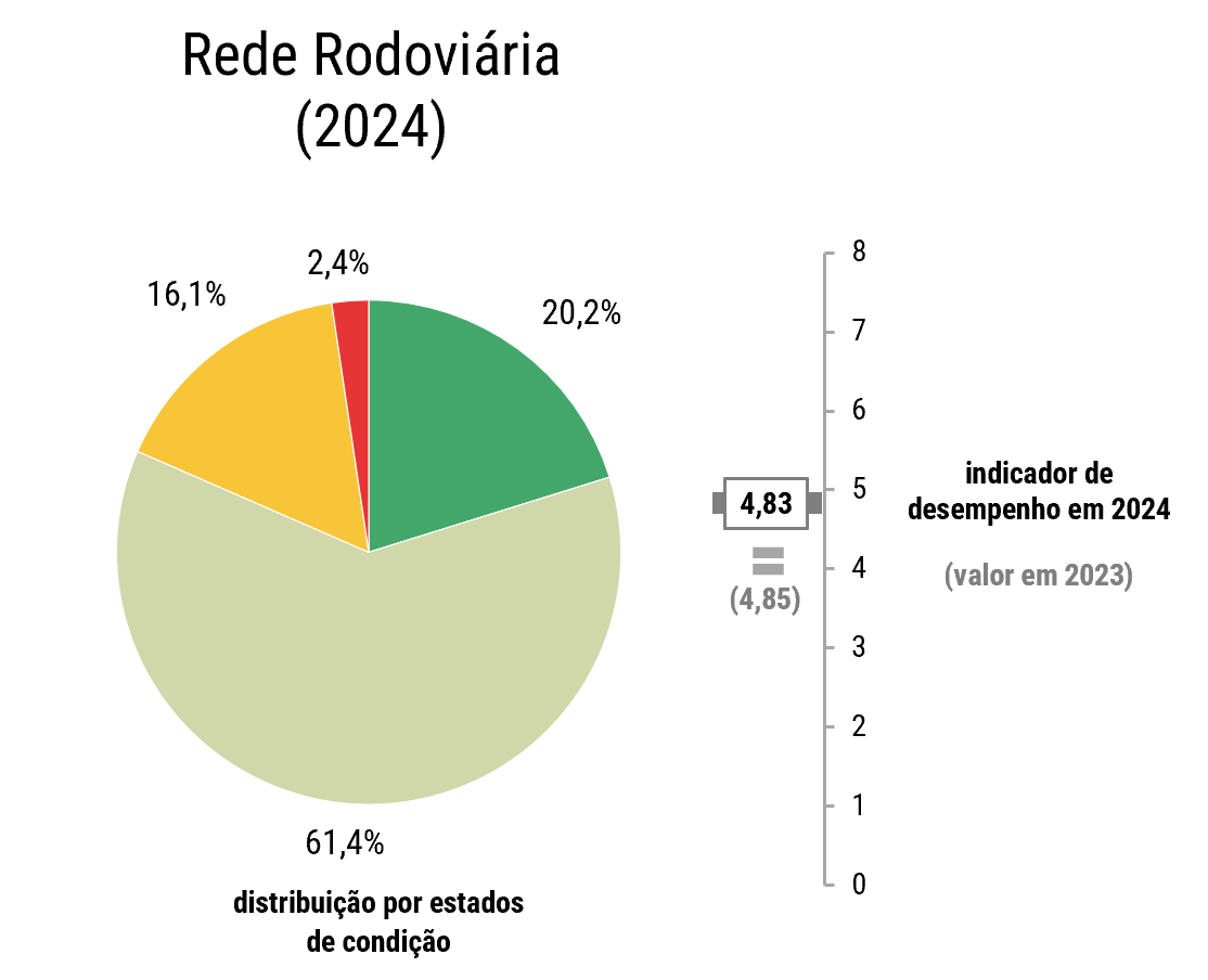 Esta análise agrega os indicadores recolhidos pela atividade regular de inspeção e diagnóstico à condição das infraestruturas rodoviárias sob gestão da IP, estando neste momento disponíveis os indicadores de desempenho relativos a 2024.