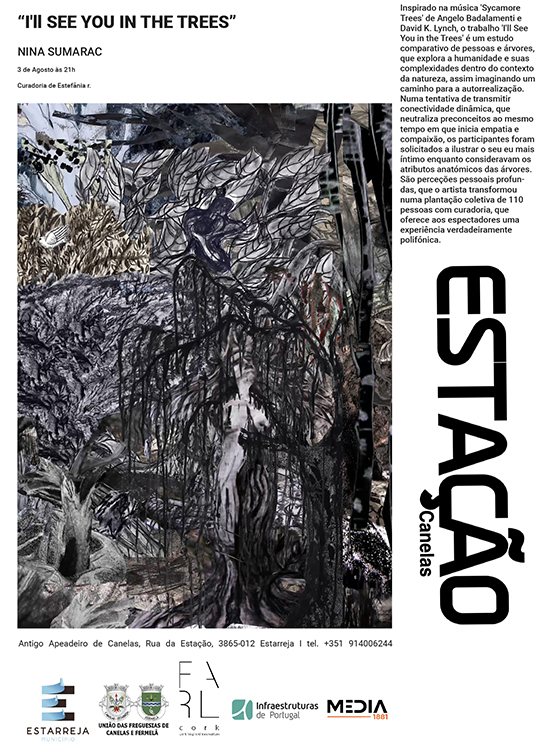 A próxima Exposição "I'll See You in the Trees" da artista Nina Sumarac, apresenta-se ao público a partir do dia 3 de agosto, às 21H00. Inspirada pela música de Angelo Badalamenti e David K.Lynch, 'Sycamore Trees', o trabalho 'I'll See You in the Trees' é um estudo comparativo de pessoas e árvores, que explora a humanidade e suas complexidades no contexto da natureza, desenvolvendo um caminho para a autorrealização.