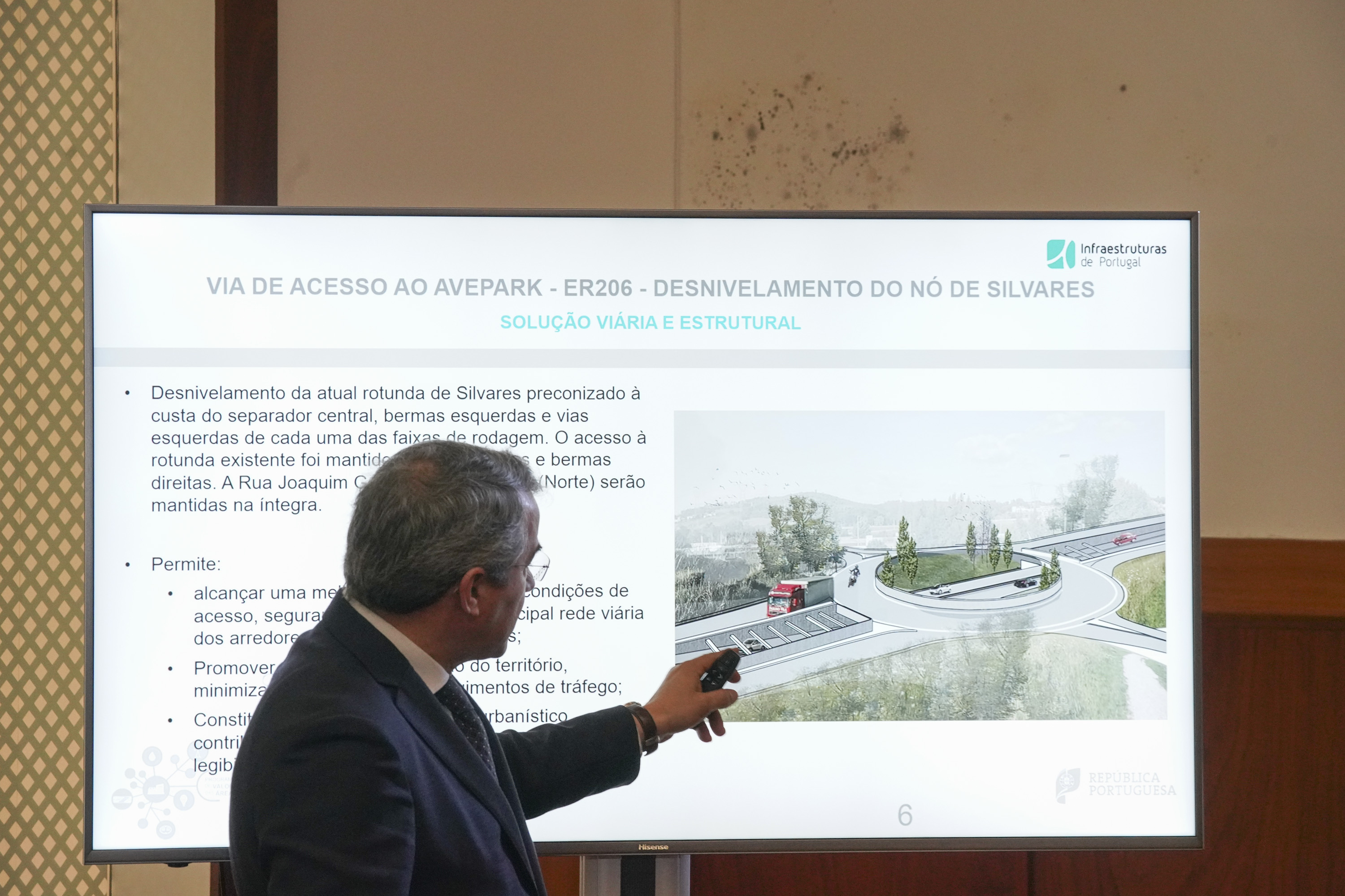 A Infraestruturas de Portugal (IP) consignou no 19 de fevereiro a obra de desnivelamento da rotunda de Silvares, de acesso à A11, no concelho de Guimarães. Com um investimento de 3,4 milhões de euros, o objetivo é melhorar as acessibilidades ao complexo Empresarial do Avepark e à rede de autoestradas, criando-se para isso uma ligação direta e mais eficiente. Na cerimónia estiveram presentes, entre outros, José Serrano Gordo, vice-presidente da IP e Domingos Bragança, presidente da Câmara Municipal de Guimarães.
