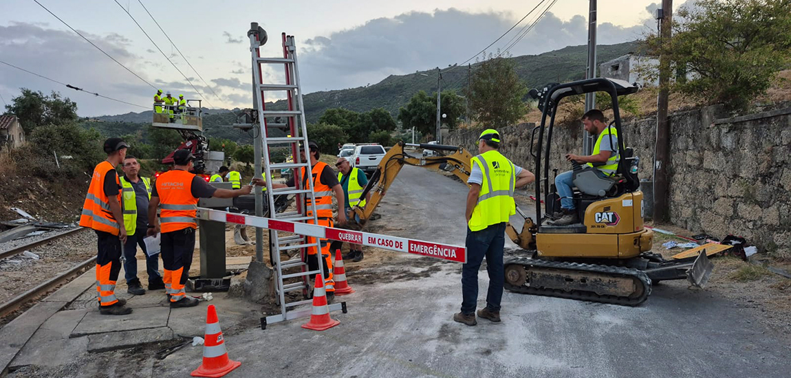 Os trabalhos incluíram a remoção das composições envolvidas e a reparação da via, da catenária e dos equipamentos da passagem de nível, todos significativamente danificados. Esta resposta foi executada com eficácia, num contexto de urgência e de elevada complexidade. O elevado grau de dedicação das equipas e parceiros permitiu retomar a circulação ferroviária em tempo recorde, sempre com o foco nos utilizadores do serviço.