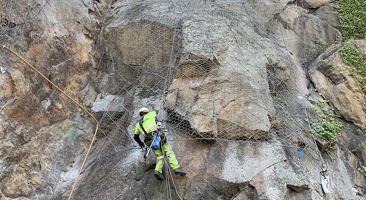 Os trabalhos consistiram na colocação de redes de proteção de alta resistência tendo, no topo do talude e zona de vertente, sido aplicadas duas barreias dinâmicas de alta resistência.