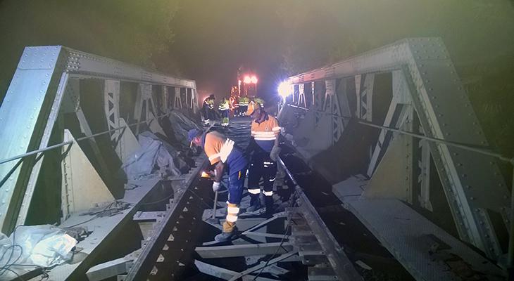 Face aos danos causados foram de imediato efetuadas pela Brigada de Pontes algumas ações de reparação, trabalhos de desempeno e substituição de algumas peças metálicas, de modo a garantir a segurança estrutural da ponte e o restabelecimento da circulação, alcançado em 42 horas, tendo sido estabelecida uma limitação de velocidade de 60 km/h.