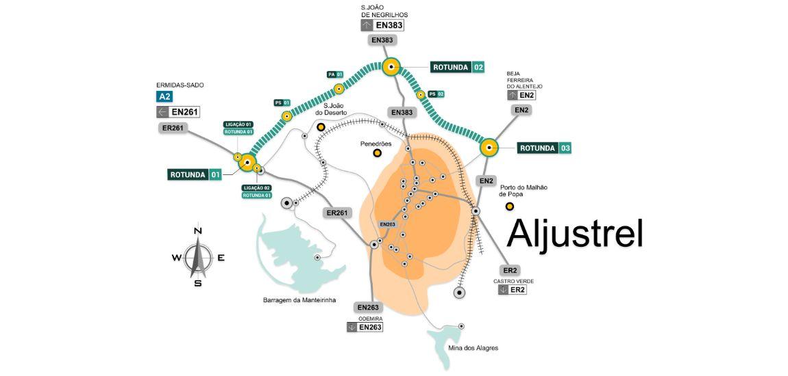 A nova Variante é fundamental para o desenvolvimento do concelho de Aljustrel e está incluída no Plano de Recuperação e Resiliência (PRR) no âmbito das acessibilidades rodoviárias associadas a áreas empresariais.