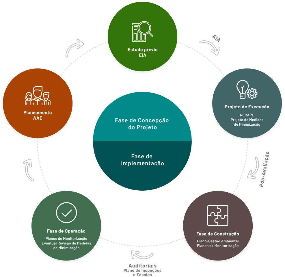 Para a Gestão Ambiental de Projeto, os projetos que não são abrangidos pelo Regime de Avaliação de Impacte Ambiental (AIA) são, ainda assim, objeto de avaliação pela IP das suas condicionantes ambientais, para a obtenção dos licenciamentos prévios ao início da obra, quando os mesmos são coincidentes com servidões e/ou restrições de utilidade pública e ordenamento do território.